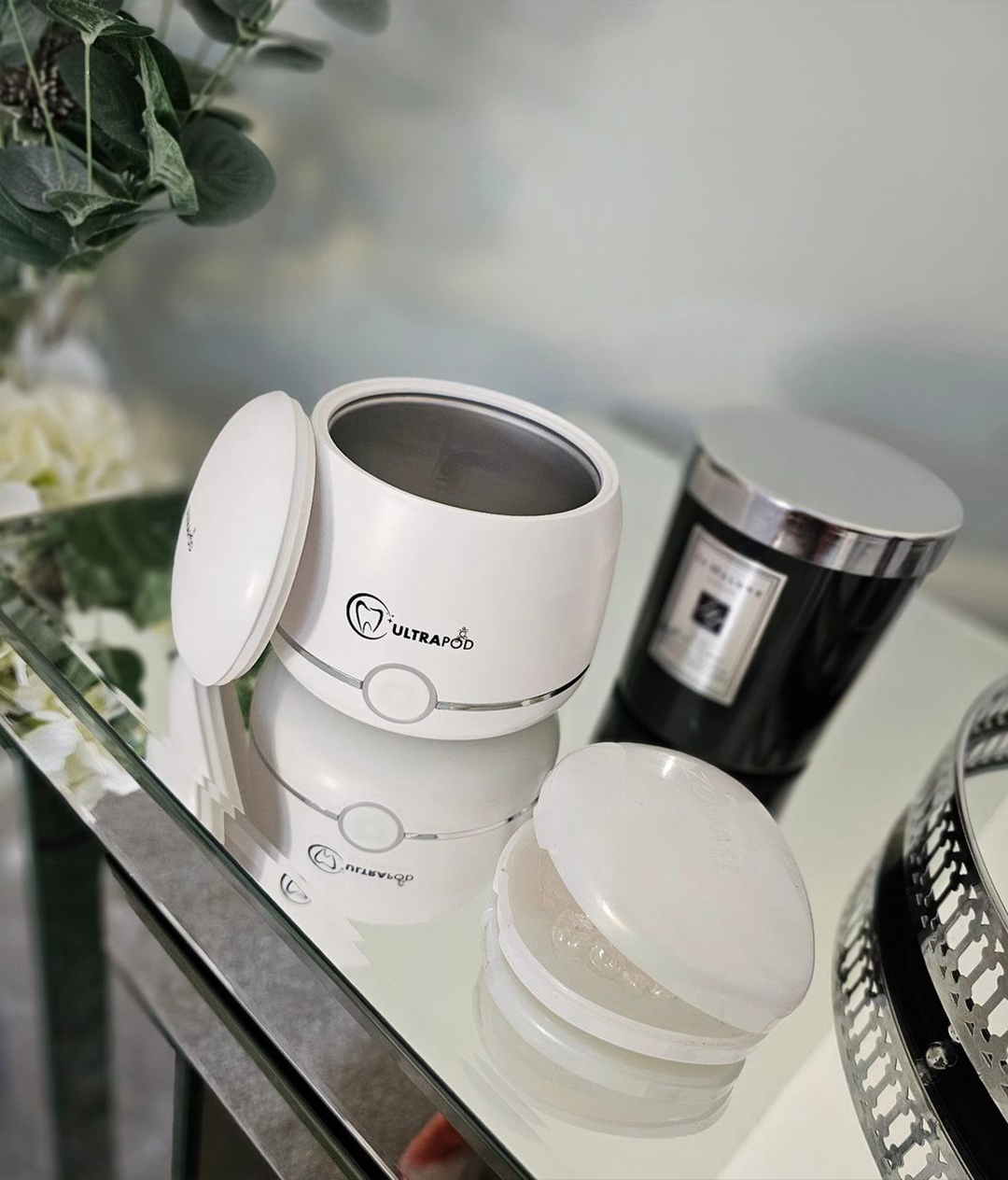 Ultrapod uses advanced ultrasonic technology to emit high-frequency sound waves that create tiny bubbles, which clean your dental appliances by gently removing bacteria, plaque, stains, and debris. This process is safe, effective, and hygienic.